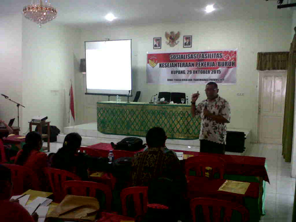 Kegiatan Sosialisasi Fasilitas Kesejahteraan Pekerja/Buruh ini dibuka Kadis Nakertrans NTT, Drs. Simon Sabon Tokan.