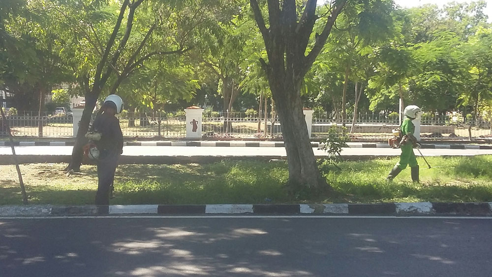 Seperti disaksikan Pos Kupang, Jumat (19/2/2016) ada dua orang yang sedang memangkas rumput sedangkan petugas lainnya sementara beristirahat.