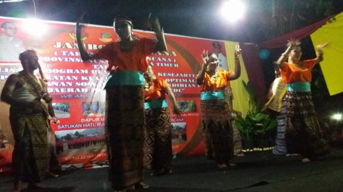 POS KUPANG.COM, KUPANG--Pada hari pertama di malam pentas seni budaya yang digelar di Jambore Tagana Daerah NTT, ditampilkan oleh lima kontingen yaitu dari kabupaten Lembata, Timor Tengah Selatan, Sikka, Manggarai Timur dan Malaka.