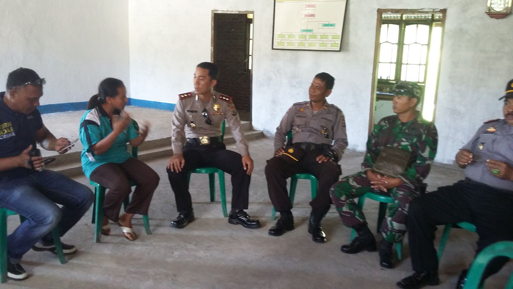Kepala Desa Lamaole, Maria Matilde Kilu Keban berbincang dengan Kapolres Irsan di kantor desa itu, Kamis (21/7/2016).