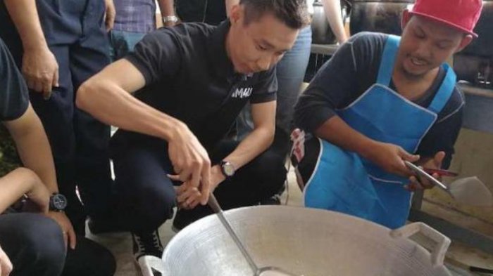 POS KUPANG.COM, KUALA LUMPUR -- Legenda bulu tangkis Malaysia, Lee Chong Wei ikut membantu mempersiapkan makan siang buat korban banjir di wilayah Kelantan, Malaysia.