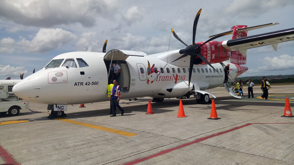 Pesawat TransNusa ATR 42-500 terbang perdana menuju Lembata, Selasa (16/5/2017).