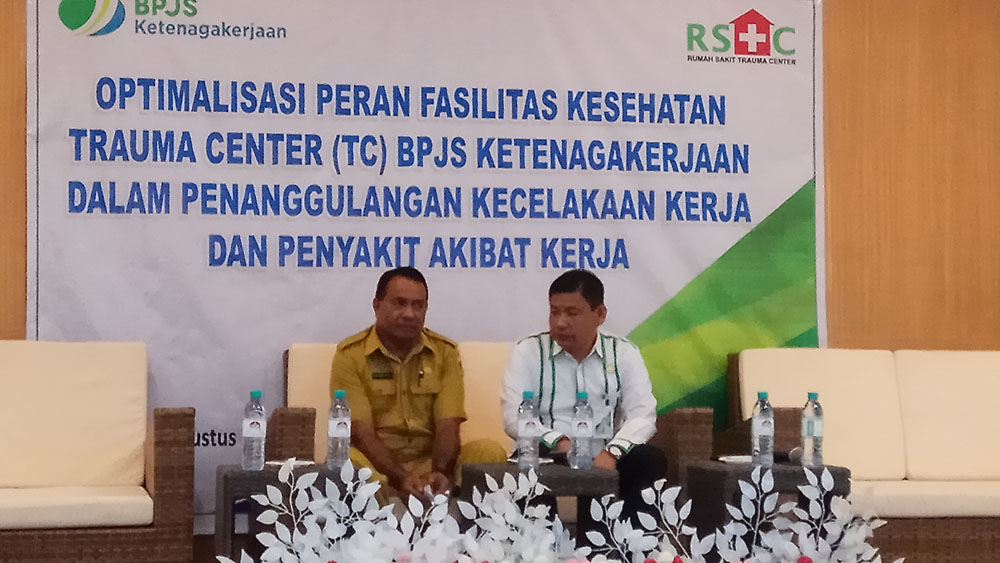Yos Rera Beka pada acara sosialisasi Optimalisasi peran fasilitas kesehatan trauma center untuk kecelakaan kerja dan penyakit