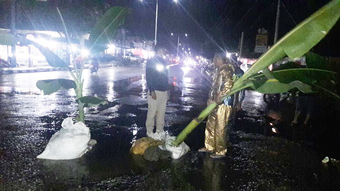 Kekesalan mereka diekspresikan lewat menanam pisang di jalan yang rusak.