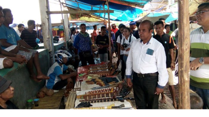 Dalam kesempatan itu calon bupati Dominggus Dama berbincang-bincang dengan para pedagang, menanyakan kondisi jualan, akses jalan, tenda jualan, air bersih dan berbagai hal kebutuhan lainnya.