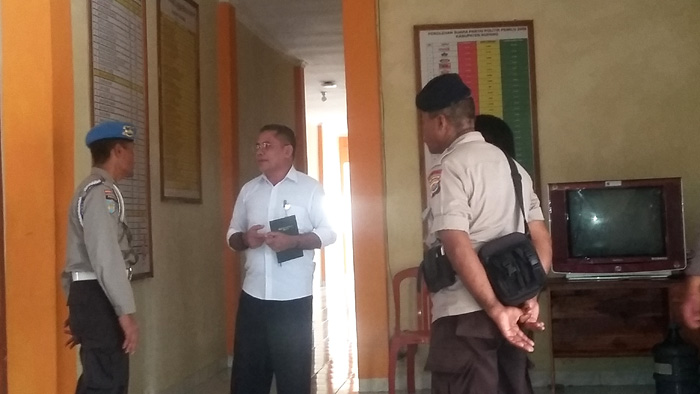 Disaksikan Pos Kupang di Oelamasi, Selasa (3/4/2018), kehadiran anggota peleton gabungan di KPU Kabupaten Kupang diterima Sekertaris, Alberthus Lisnahan.