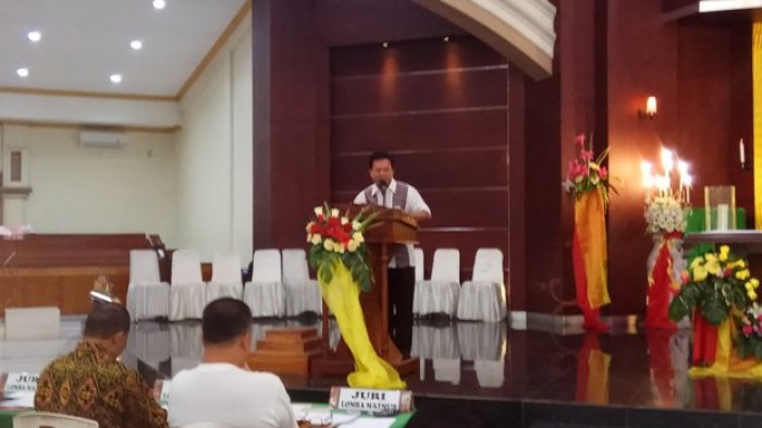 "Pagi ini kita melaksanakan kegiatan lomba Mazmur untuk kategori anak, remaja dan dewasa. Harapan semua peserta menaati semua ketentuan yang sudah dibuat. Menerima yang terbaik dari keputusan dewan juri