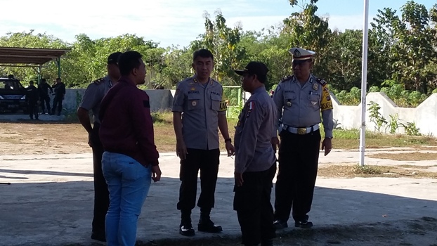 POS-KUPANG.COM|TAMBOLAKA--Aparat kepolisian Polres Sumba Barat dibackup Brimob, Dalmas Polda NTT dan TNI semenjak Jumat (6/7/2018) pukul 6.30 wita mensterilkan kompleks kantor KPUD di Poma, SBD untuk menjamin kelancaran acara rapat pleno perhitungan perolehan suara pasangan calon gubernur dan wakil gubernur NTT periode 208-2023 dan pasangan calon bupati dan calon wakil bupati Kabupaten Sumba Barat Daya periode 2018-2023.