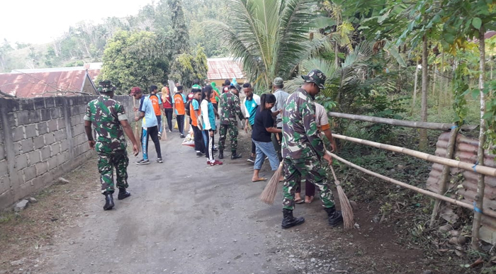 Menyambut HUT ke-73 TNI Tahun 2018, Kodim 1602/Ende melaksanakan kegiatan karya bakti dengan sasaran pembersihan di Kelurahan Roworena Barat