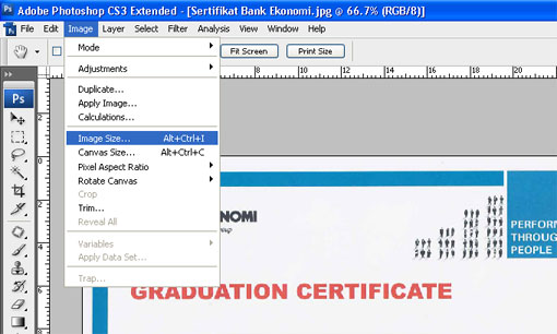 Buka file Anda di Adobe Photoshop. Dari menu Image, Image Size