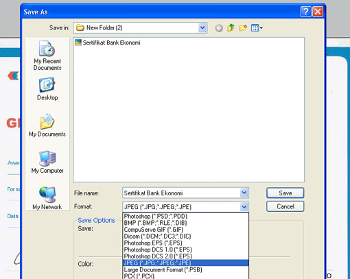 Kemudian Simpan file dokumen hasil scan Anda. Dari menu File, Save. Pilih format jpg.