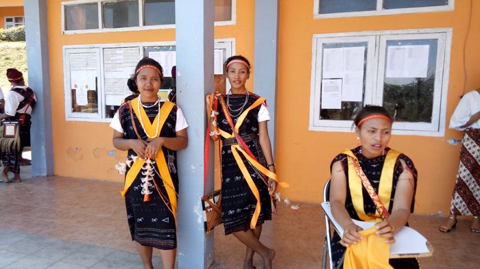 Vera Minsri dan Ludgardis Ina merupakan anggota tarian saat menjemput rombongan Wakil Gubernur NTT, Josef Nae Soi di Kampus STKIP Citra Bakti Ngada