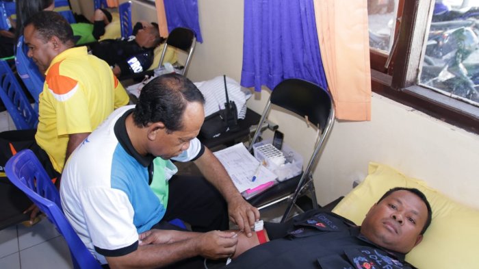 Kegiatan donor darah tersebut berlangsung di Markas Brimob Subden 3 Den A Pelopor Sumba Timur, Jumat (2/11/2018).