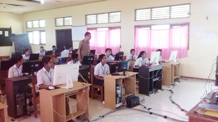 POS-KUPANG.COM | MBAY -- Sebanyak 80 siswa Sekolah Menengah Pertama Negeri (SMPN 1) Aesesa Selatan di Kabupaten Nagekeo mengikuti simulasi Ujian Nasionl Berbasis Komputer (UNBK) di sekolah tersebut, Senin (4/2/2019).