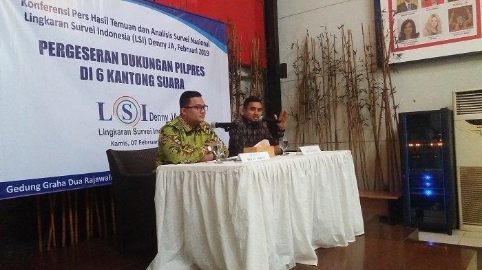 Hasil survei Lingkaran Survei Indonesia (LSI) Denny JA menunjukan suara pasangan nomor urut 02 hanya mendapatkan dukungan 27,8 persen suara.
