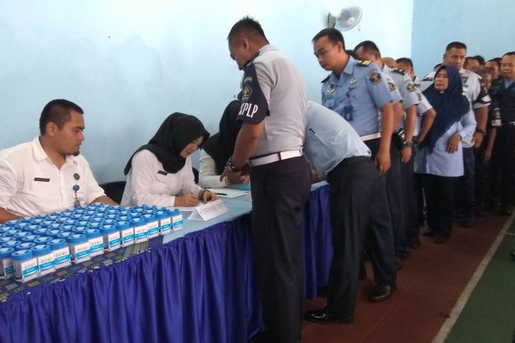 POS-KUPANG.COM | CIAMIS - Sebanyak 80 pegawai Lembaga Pemasyarakatan Ciamis, Jawa Barat, menjalani tes urine, Rabu (20/2/2019).