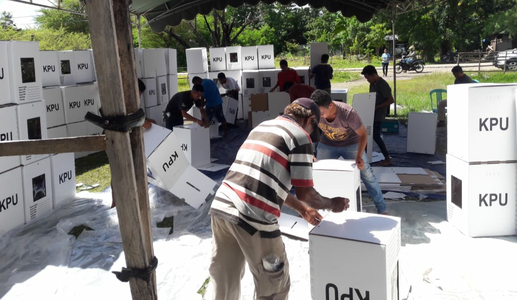 "Dan kita mulai rakit kota suara dan bilik suara dari kemarin tanggal 28 Februari sampai tanggal 1 Maret. Dan saat ini sudah selesai rakit," ungkapnya.
