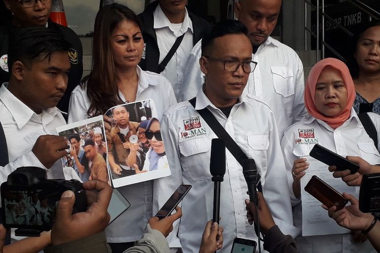 POS KUPANG.COM, JAKARTA -- Relawan pendukung Joko Widodo yang tergabung dalam organisasi Jokowi Mania melaporkan video yang menggambarkan seorang pria mengancam akan memenggal Jokowi saat berdemonstrasi di depan Kantor Bawaslu RI ke Polda Metro Jaya, Sabtu (11/5/2019).