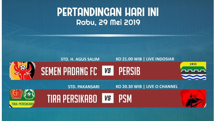 Laga Semen Padang vs Persib Bandung akan disiarkan langsung dan live streaming Indosiar dan PS Tira Persikabo vs PSM Makassar juga ditayangkan dan live streaming OChannel.