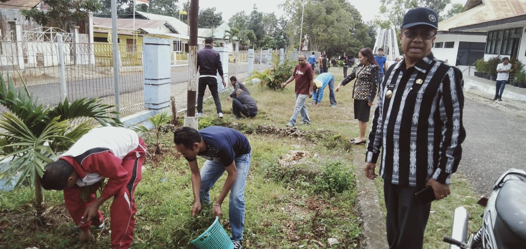 Ditemui POS-KUPANG.COM di halaman kantor Badan Kepegawaian Pelatihan dan Pendidikan (BKPP) Kabupaten TTS di kompleks kantor bupati lama, Bupati Tahun nampak mengarahkan para pegawai untuk memungut sampah dan memangkas rumput yang sudah meninggi di halaman kantor.