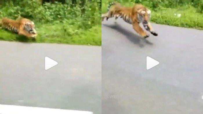 Setelah tak berhasil mengejar pengendara motor, harimau tersebut tampak berlari ke sisi lain hutan.
