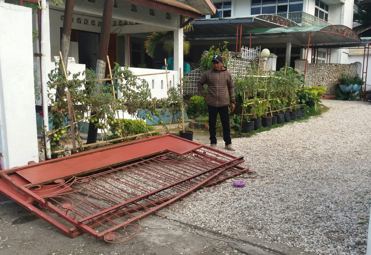 "Tadi pagi saya dapat WhatsApp dari orang yang jaga rumah jika ada oknum pemuda mabok yang masuk dan merusak rumah jabatan. Saya datang lihat jendela salah satu kamar sudah pecah semua dan pintu pagar depan sudah rubuh akibat dirusak para pelaku" ungkap Wabup Army.
