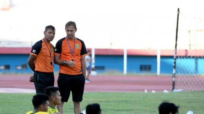 Pelatih Persebaya Surabaya Wolfgang Pikal membuka kesempatan untuk memainkan dua pemain Timnas Indonesia, Otavio Dutra dan Hansamu Yama, saat meladeni Persib Bandung di Stadion Kapten I Wayan Dipta, Bali, Jumat (18/10/2019).