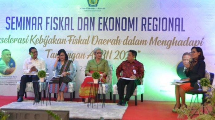 Seminar Fiskal dan Ekonomi Regional dengan tema "Akselerasi Kebijakan Fiskal Daerah dalam menghadapi tantangan APBN 2020" digelar di Aula Lantai 6 Gedung Keuangan RI Wilayah NTT jalan Frans Seda, Kecamatan Oebobo Kota Kupang, Rabu (23/19/2019).