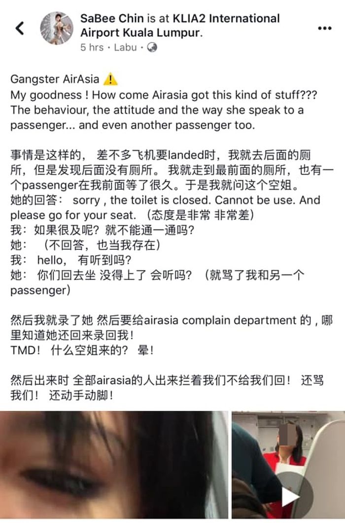 Ia juga telah mengadukan perbuatan pramugari ke bagian pengaduan maskapai Air Asia.