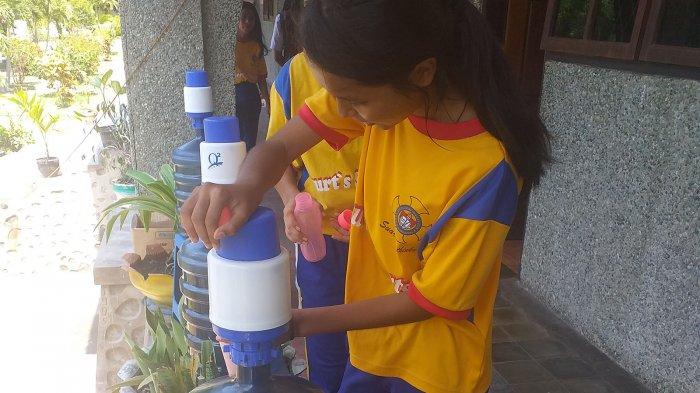 Dikatakan para siswa hanya diperbolehkan membawa kemasan atau wadah yang berisi air minum dari rumah dan apabila air yang dibawa dari rumah sudah habis diminum maka para siswa dipersilahkan mengambil air yang disiapkan pihak sekolah.