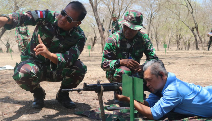 Latihan menembak senjata ringan TW IV Kodim 1604/Kupang berjalan dengan aman, tertib dan lancar. Saat latihan tersebut, pimpinan redaksi Pos Kupang Hasyim Ashari dan menejer PSDM Pos Kupang Johar yang diundang juga menjajal kemampunan menembak mereka menggunakan senjata laras panjang, dengan pendampingan instruktur. (Laporan Reporter POS-KUPANG.COM, Ryan Nong)