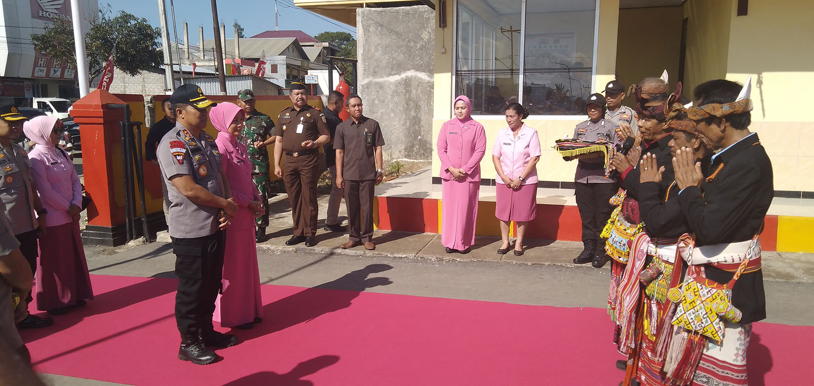 Kapolda Hamidin dan rombongan diterima secara adat dengan natoni adat. Usai natoni, Kapolda Hamidin bersama Istri disambut dengan tarian okomama yang dibawakan Polwan Polres TTS. Kapolda Hamidin juga disuguhan sirih pinang sebagai ucapan selamat datang.