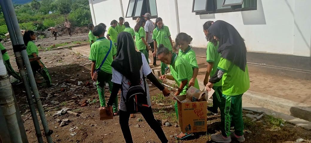 Warga Bersama Pelajar SMK Negeri I Aesesa Pungut Sampah di Kawasan RSD Aeramo
