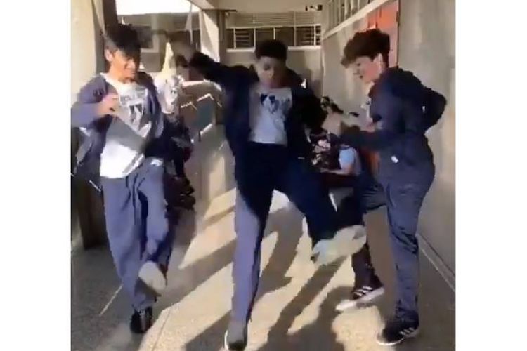 Dalam video berdurasi 4 detik itu, terlihat tiga orang remaja berdiri berjajar. Kemudian, ada seseorang memberikan aba-aba agar mereka lompat berbarengan.