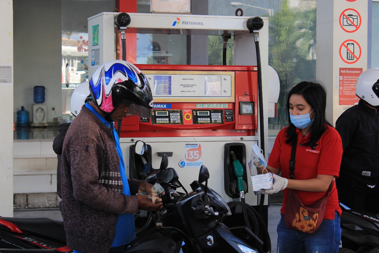 " Sepanjang jalan, kami secara acak membagikan masker.