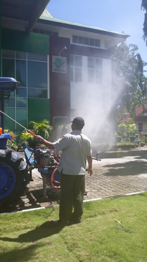 Upaya yang dilakukan BPTP NTT adalah melakukan penyemprotan disinfektan pada lingkungan kantor
