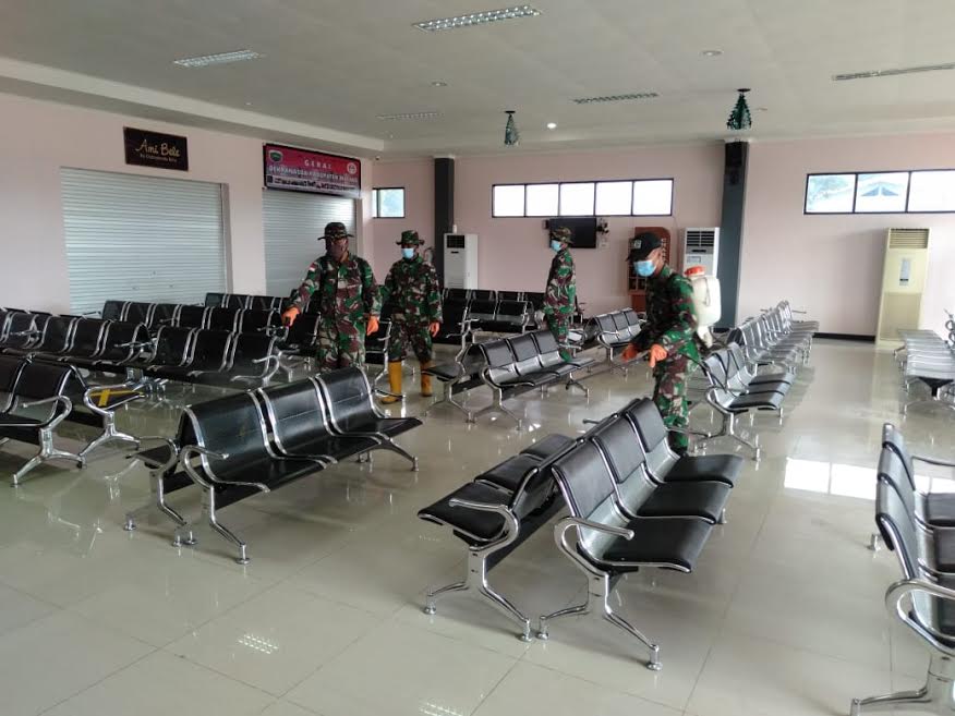 Selain bandara, tentara juga menyemprotkan hidroklorin di Pasar Baru Beirafu, Masjid Hidayatullah, Gereja Katedral, Markas Kodim 1605/Belu