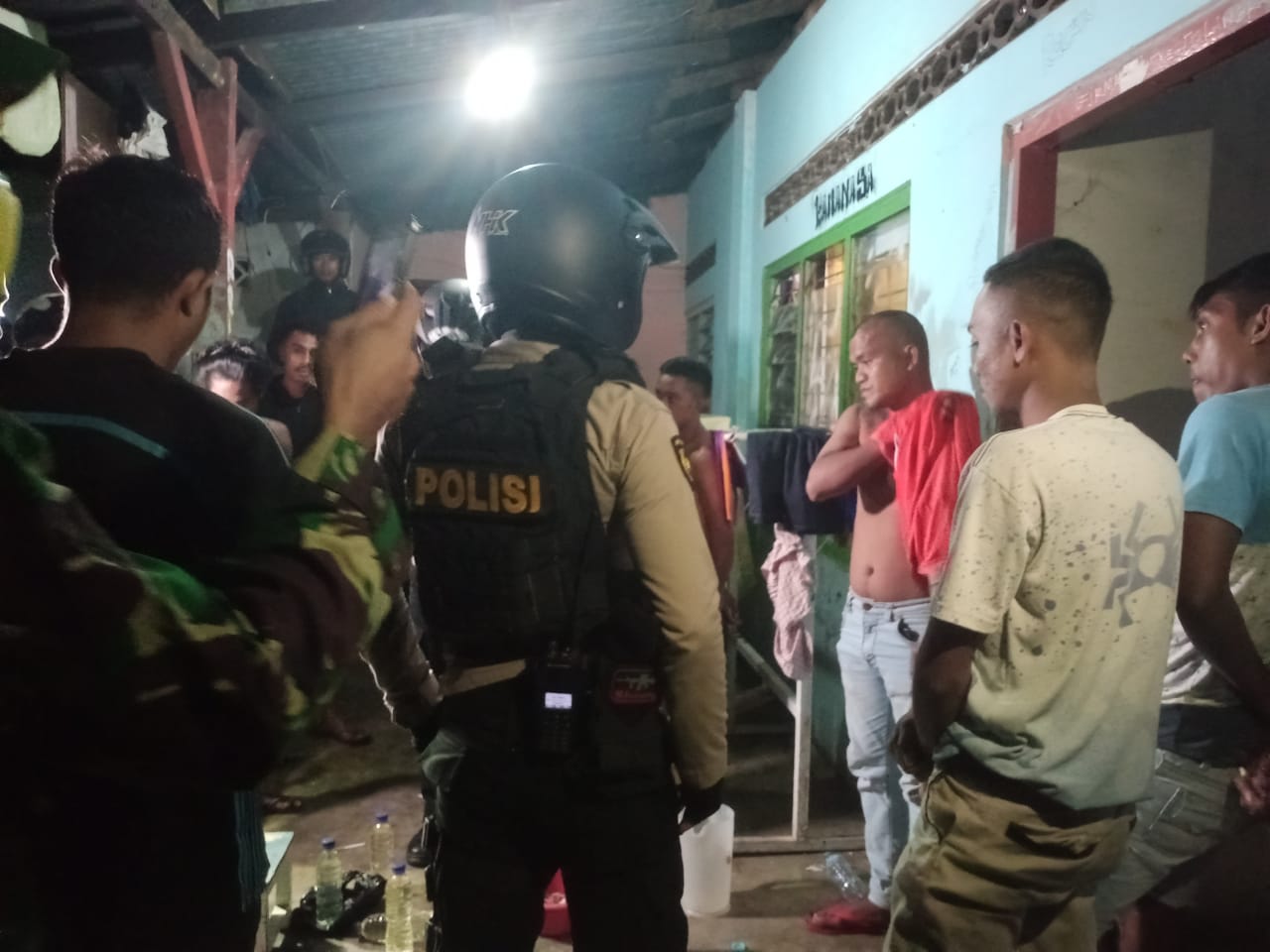 Saat digerebek, keenam oknum pemuda di Kos Kamanasa, tampak kaget lantaran didatangi puluhan personel tim gabungan.