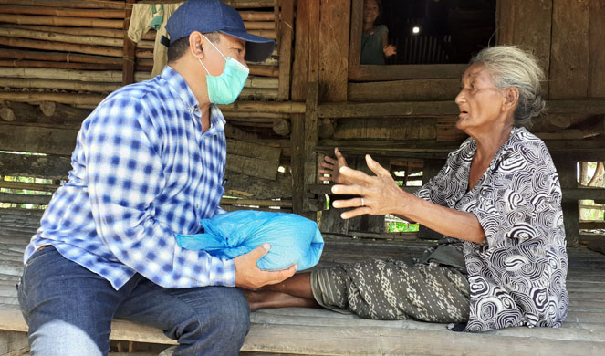 Terlihat Wakil Ketua DPRD NTT, Aloysius Malo Ladi, S.E mendatangi satu persatu rumah warga yang berdiri berjejer di bukit Kaduli,Loura, SBD, menyerahkan langsung sembako seraya mensosialisasikan pentingnya menjalankan protokol kesehatan demi mencegah tertularnya virus corona di daerah itu.