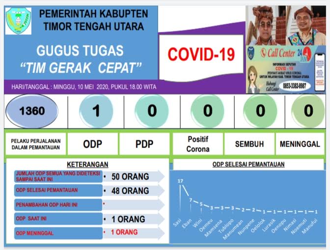 Berdasarkan data yang diterima oleh Pos Kupang, jumlah ODP di Kabupaten TTU sisa satu orang saja yang masih dalam proses pemantauan petugas. Satu ODP tersebut berasal dari daerah Wini, Kecamatan Insana Utara.