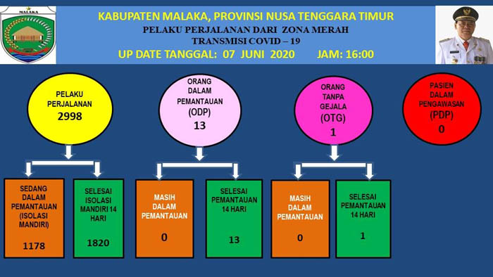 Dalam catatan pelaku perjalanan dari zona merah ke Malaka masih cukup tinggi. Tercatat sampai tanggal 7 Juni 2020 Pukul 16.00 Wita mendekati angka 3.000 dimana kini sudah 2.998 orang