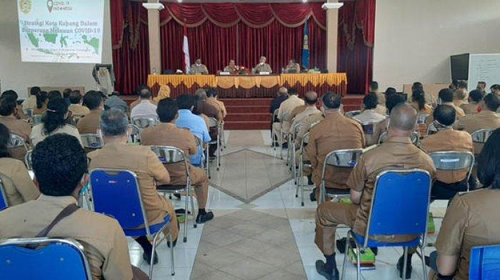 POS-KUPANG.COM | KUPANG - Pemerintah Kota Kupang menggelar Sosialisasi Peraturan Walikota Kupang Nomor 18 tahun 2020 tentang Petunjuk Teknis Pelaksanaan Tatanan Normal Baru yang Produktif dan Aman Covid-19 di Kota Kupang, di Aula Rumah Jabatan Wali Kota Kupang, Selasa (7/7/2020).