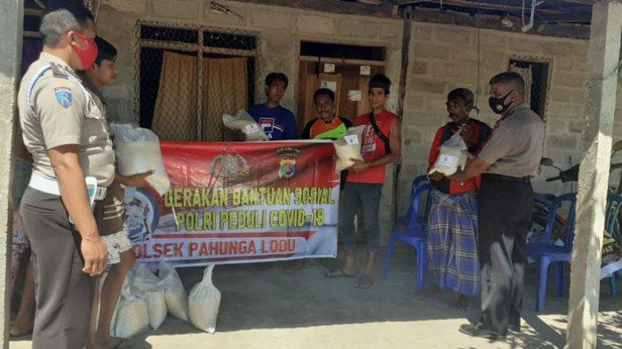 Pihak Polsek Pahunga Lodu, Polres Sumba Timur menyalurkan beras kepada warga terdampak Covid-19 di wilayah setempat