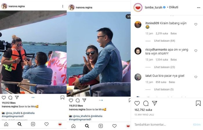 Sementara itu, dalam keterangan foto Regina sesumbar bahwa dirinya telah dilamar oleh sang pacar.