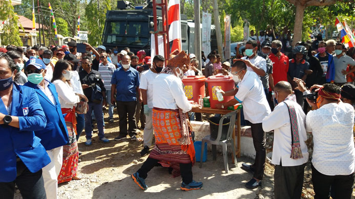 Ribuan massa pendukung menghantar paket kesayangan mereka menuju Kantor KPU. Konvoi kendaraan roda dua, roda empat dan roda enam mengular di jalan. Masa pendukung juga menyediakan soundsystem di kendaraan sambil memutar lagu-lagu yang volumennya "mengetarkan" Kota Atambua.