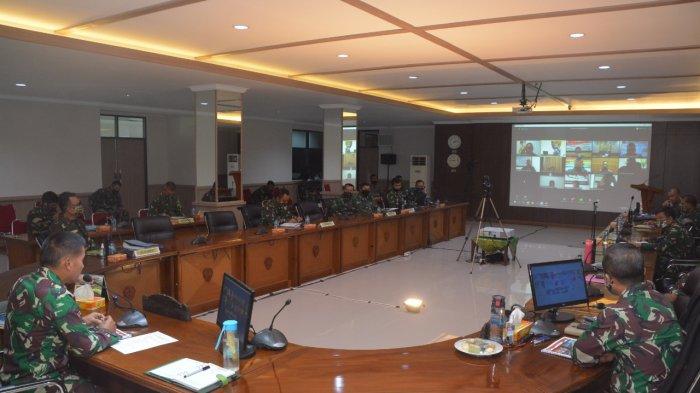 POS-KUPANG.COM | KUPANG-- Pangdam IX/Udayana Mayjen TNI Kurnia Dewantara menerima paparan kesiapan pengamanan Pilkada Serentak yang digelar secara Video Conference (Vidcon), pada Kamis (17/9/2020) di ruang Airlangga.