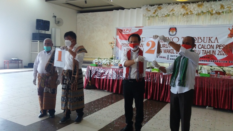 POS KUPANG.COM| ATAMBUA-----Komisi Pemilihan Umum (KPU) Kabupaten Belu menyelenggarakan rapat pleno terbuka pengundian nomor urut pasangan calon peserta pemilihan bupati dan wakil bupati Belu tahun 2020, di Hotel Matahari, Kamis (24/9/2020).