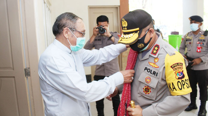 Saat tiba, Kapolda Irjen Pol. Drs. Lotharia Latif, S.H., M. Hum. dan pejabat utama Polda NTT yang terdiri dari Dirbinmas Polda NTT Kombes Pol Drs. Taufiq Triatmojo dan Kabidhumas Polda NTT Kombes Pol. Johannes Bangun, S.Sos, S.I.K. disambut hangat oleh Mgr Petrus Turang dengan pengalungan selendang adat di Istana Keuskupan Agung Kupang di Jalan Kayu Putih, Kecamatan Oebobo, Kota Kupang.
