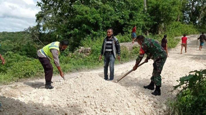 Peduli warga binaan, Babinsa Koramil 1604/Batakte Nekamese memperbaiki jalan penghubung
