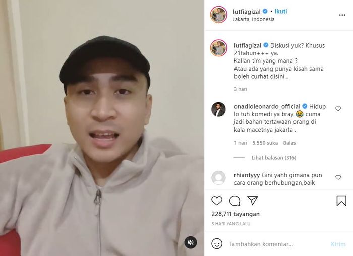 Kurang lebih seperti ini ucapan Lutfi Agizal dalam ungahan video di akun Instagramnya.